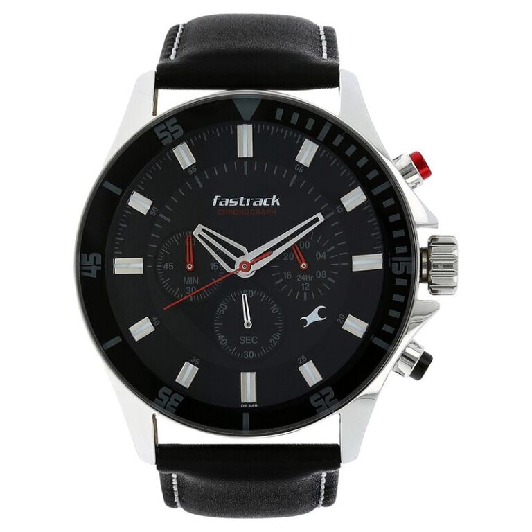 Fastrack Big Time Quartz Chronograph Black Dial Leather Strap Watch for Guys (NP3072SL02)