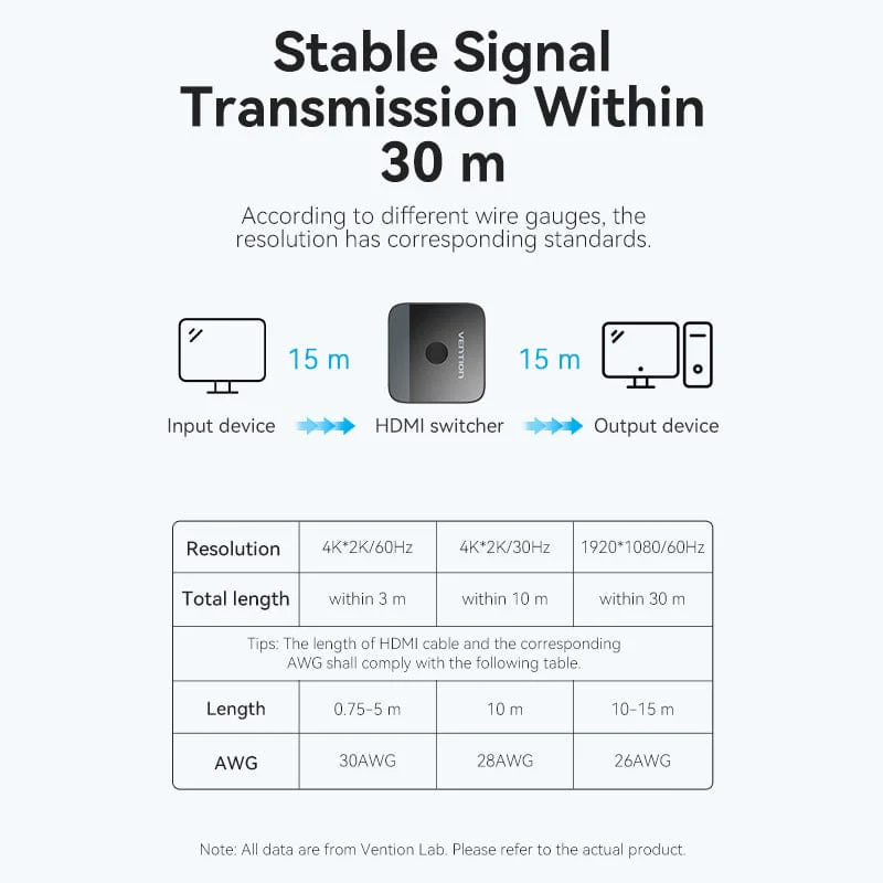 Vention AKOB0 2-Port HDMI Bi-Direction 4K Switcher